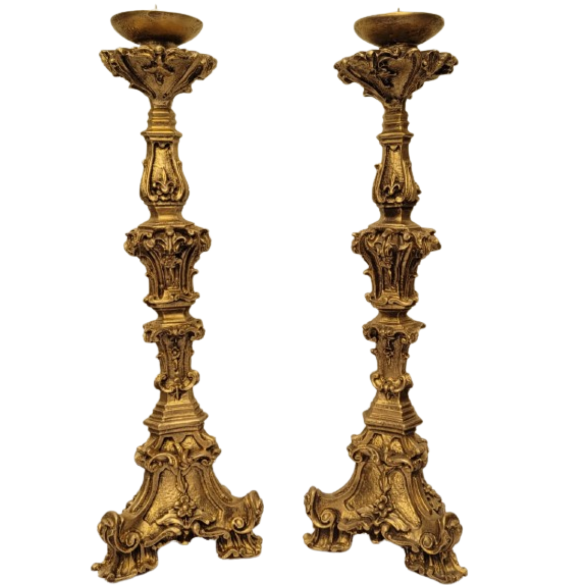 Apresente elegância e sofisticação ao seu ambiente com este belo par de castiçais esculpidos em resina, com 65cm de altura. Com um design clássico e detalhes minuciosos, esses castiçais são perfeitos para iluminar sua casa, igreja ou espaço de devoção, criando uma atmosfera acolhedora e serena.