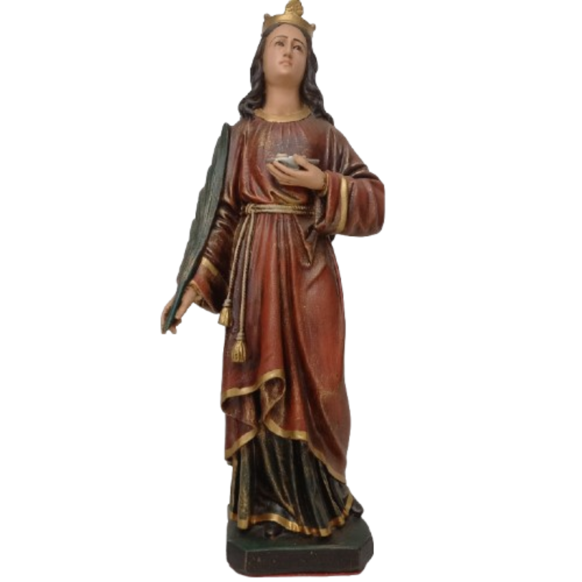 Com detalhes meticulosamente esculpidos, esta imagem transmite uma sensação de devoção e força, convidando à oração e à busca da intercessão de Santa Luzia, especialmente para aqueles que sofrem com problemas de visão ou buscam proteção espiritual. Sua presença em seu lar, capela ou espaço de devoção será um lembrete constante do exemplo de coragem e pureza desta santa mártir.